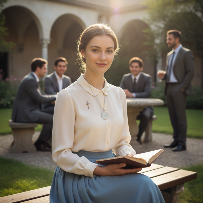 Diseño redondo con grabado de la oración Padre Nuestro y cruz en el centro.