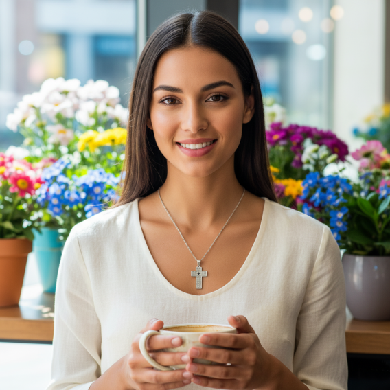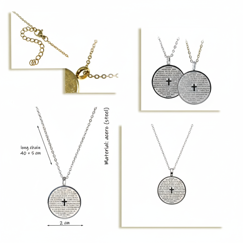 Collar colgante con cruz y la oración padre nuestro dorada y plateada en forma cruz o redonda