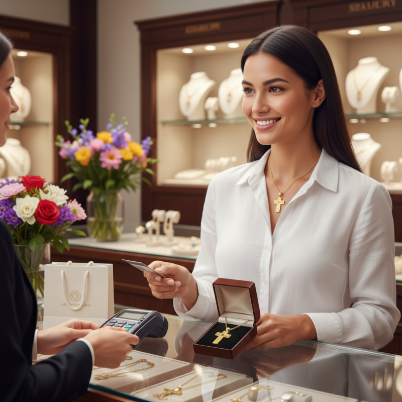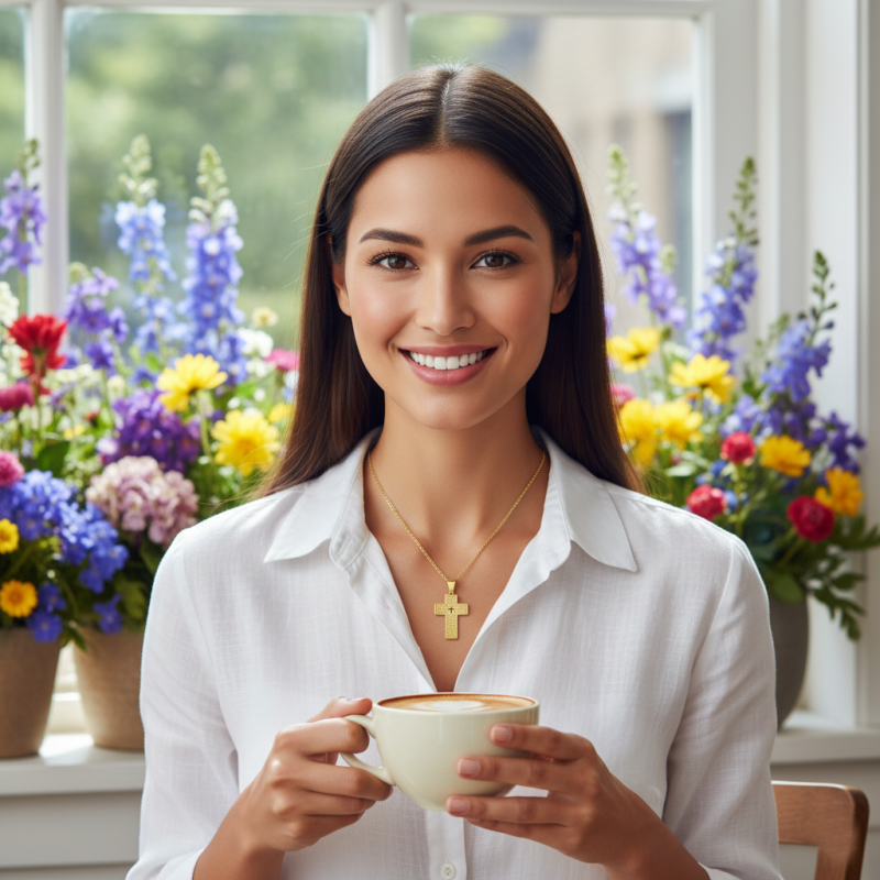 Collar cruz horizontal, colgante de acero color oro, mujer,antialérgica.