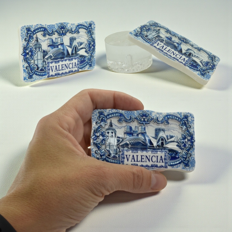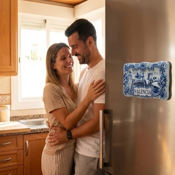 Lleva la luz de Valencia a tu cocina. Este imán no es un simple souvenir; es un pequeño azulejo que captura la esencia de la ciudad.