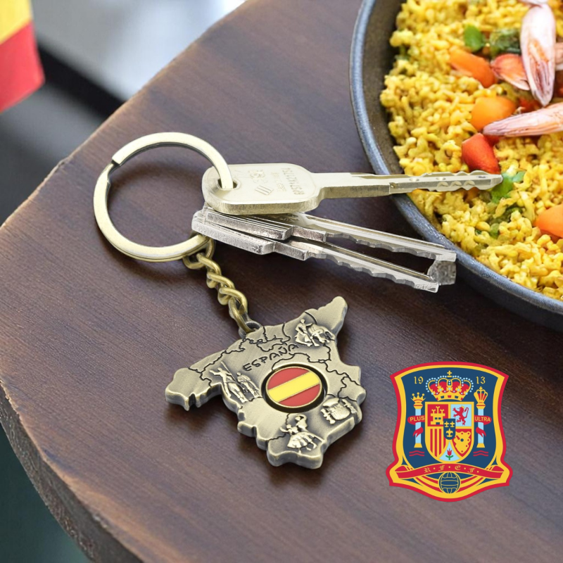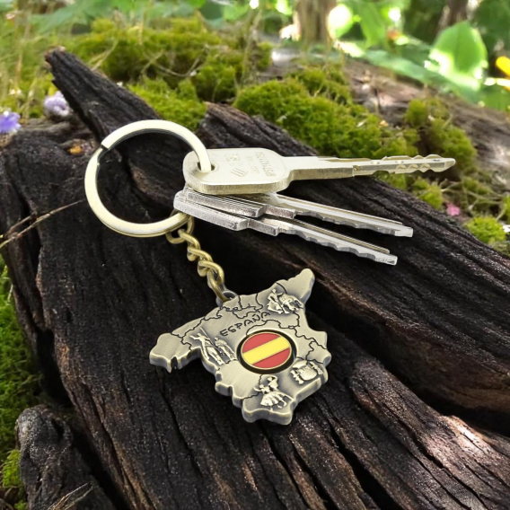 Llavero con la silueta de España y con anillas original