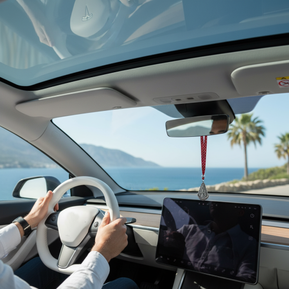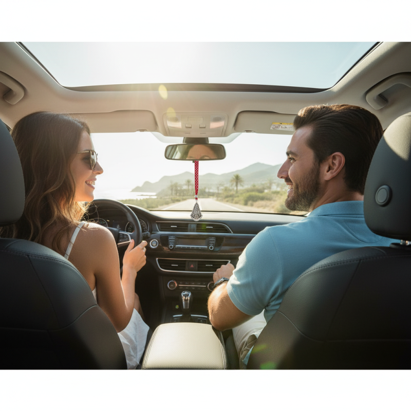 Elige la cinta de la Virgen del Roció para personalizar tu coche fácil de colocar, colores de Andalucía y Rociero y también en rojo con lunares blancos.