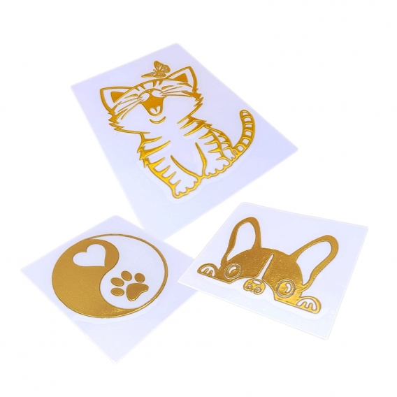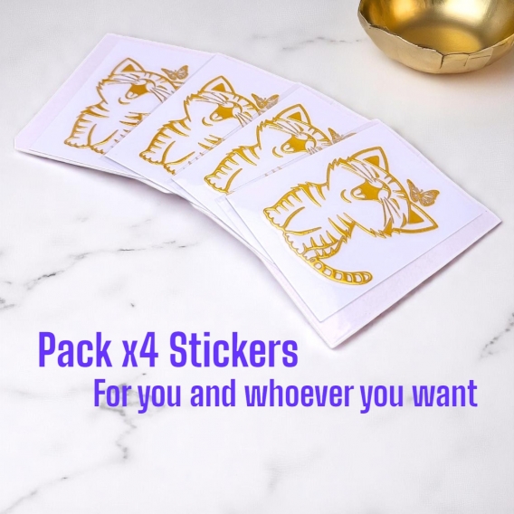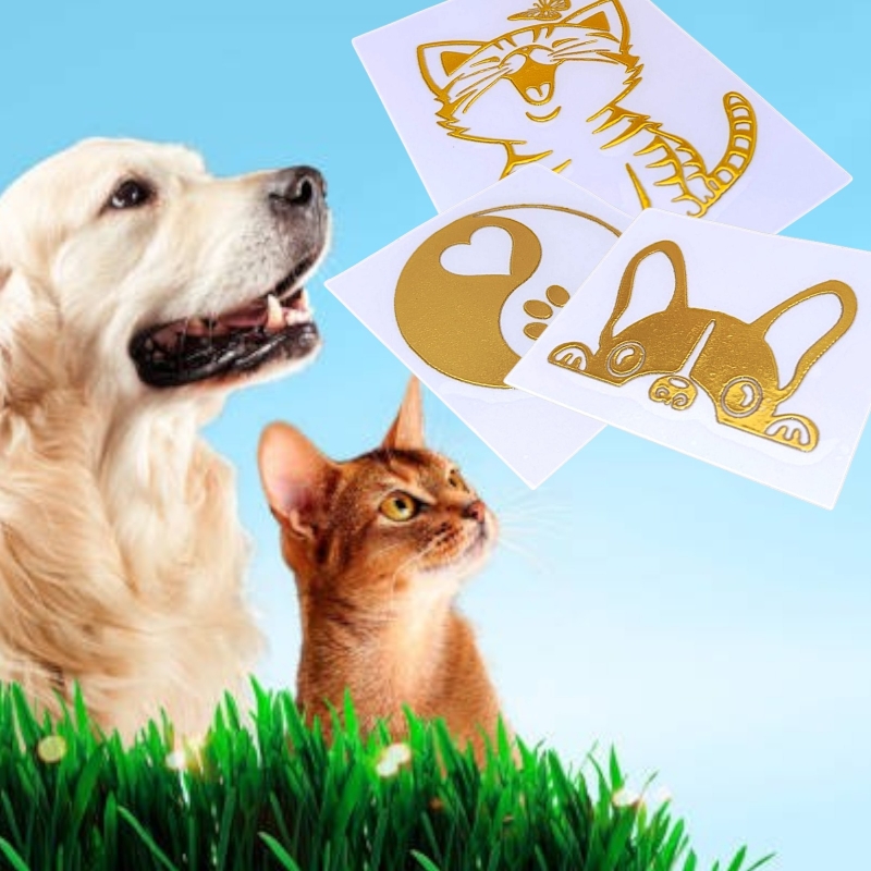 El pack incluye cuatro diseños únicos: un elegante gato dorado, un adorable perro, el símbolo del yin yang y una divertida huella. Ya sea que quieras decorar tu coche, laptop, botella de agua o cualquier otra superficie, estas pegatinas se adhieren fácilmente y lucen increíbles.