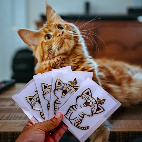 ¡Dale un toque de estilo único a tus objetos con este pack de pegatinas premium! Incluye diseños exclusivos de gato dorado, perro, yin yang y huella.