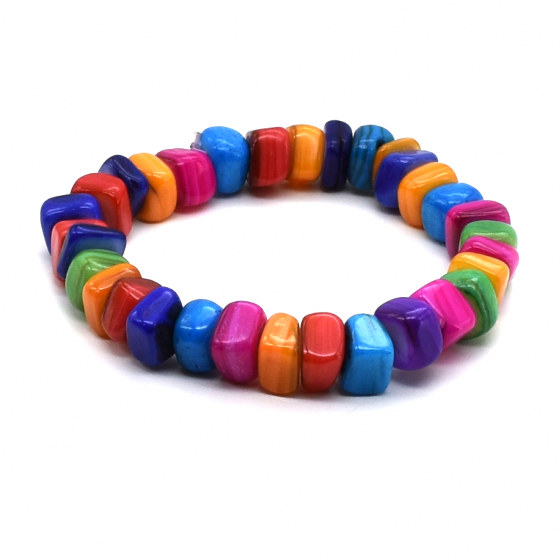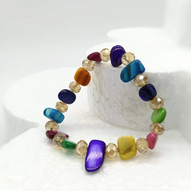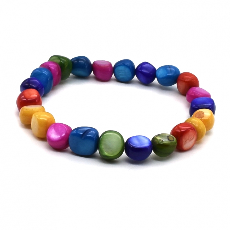 Pulsera para mujer de moda de nacar colorines, elástica.