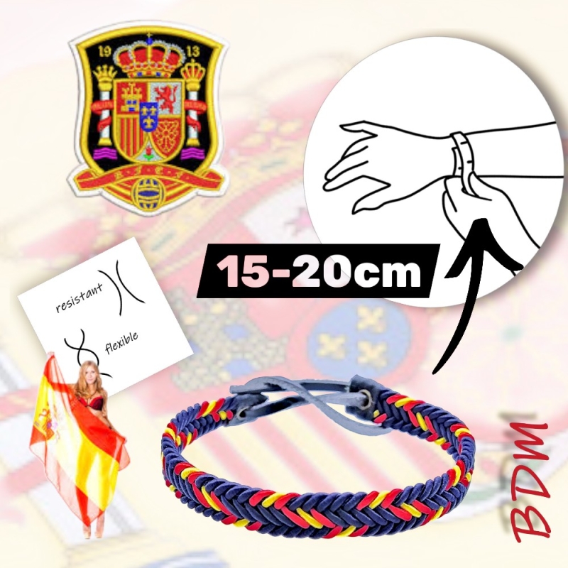 Una pulsera perfecta para los amantes de España y todas sus tradiciones, con su estilo trenzado en un fondo azul marino y la bandera de España por todo el contorno de la pulsera es perfecta para hacerle un regalo a tu amigos o familiares que compartan esta pasión, o para hacerte un regalo a ti mismo.