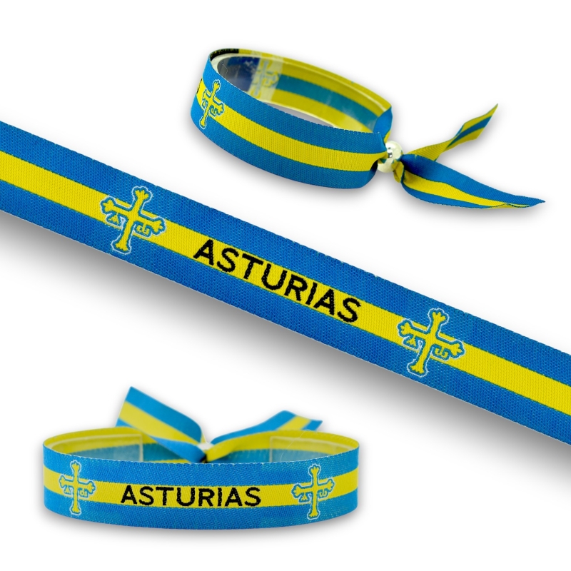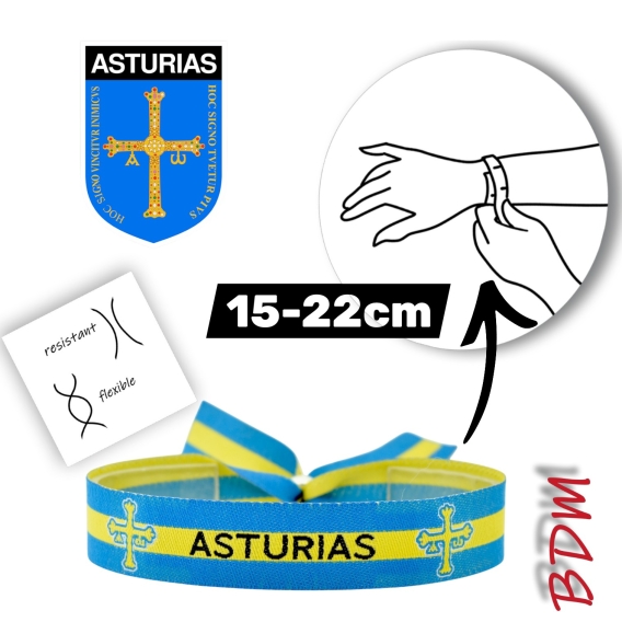 TAMAÑO DE PULSERAS ASTURIAS** Pulsera de tela ajustable Ancho 12mm, largo 32cm, Bordado alta resolución. La mejor opción para todo tipo de ocasiones, como cumpleaños, aniversario, día de San Valentín, etc.