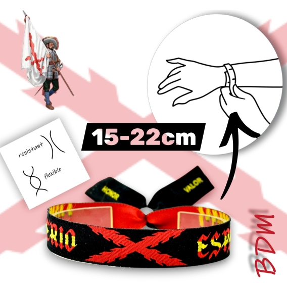 Pulsera de Tela Cruz de Borgoña, Bandera Borgoña y Tercios Españoles, Bandera de España. Accesorio unisex de Orgullo Histórico.