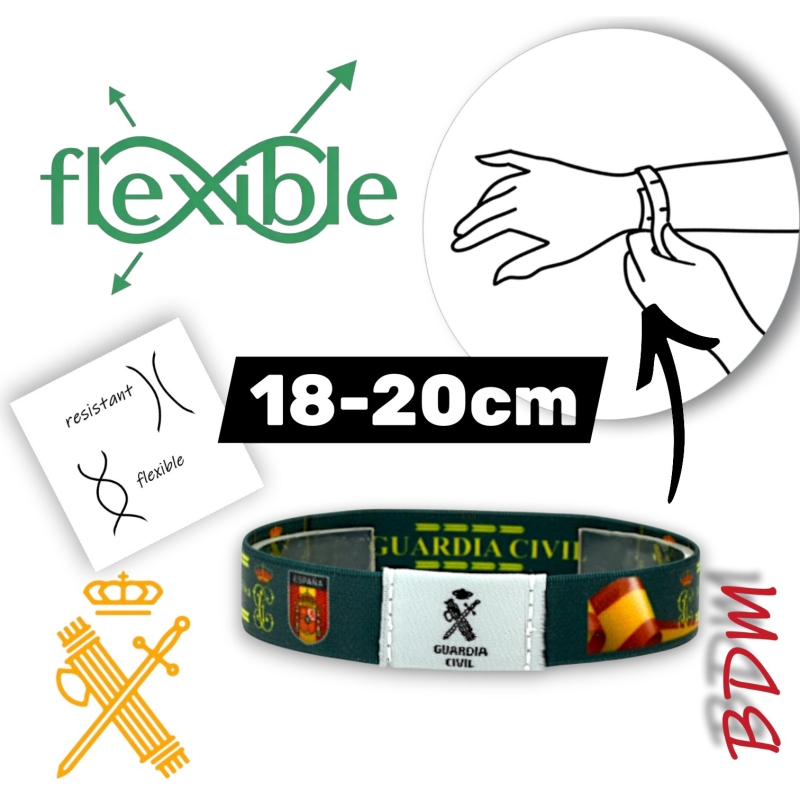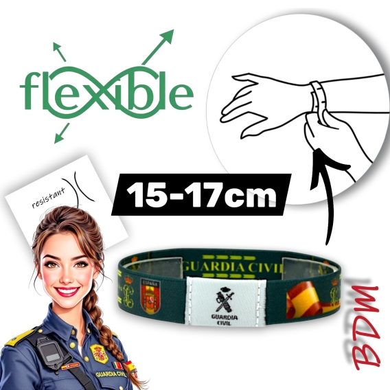 Esta pulsera elástica de la Guardia Civil ha sido diseñada pensando en la comodidad y en el orgullo de pertenencia. Es un accesorio discreto pero cargado de significado, ideal tanto para los profesionales que visten el uniforme como para los ciudadanos que valoran su sacrificio.