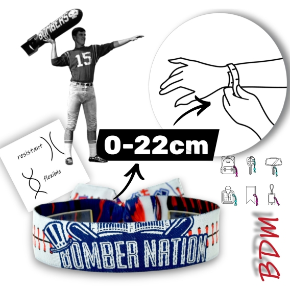 Siente la emoción del estadio en cada inning. Esta pulsera elástica es el accesorio definitivo para los verdaderos fans del béisbol y del espíritu de Nueva York. Con un diseño vibrante que destaca "Bomber Nation", "The Bronx" y las clásicas costuras rojas de la pelota, es perfecta para animar a tu equipo o llevar el estilo urbano a la calle. Cómoda, resistente y totalmente ajustable.